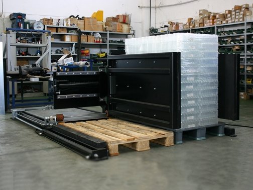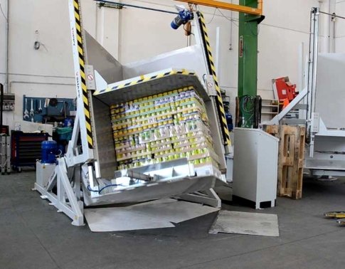 Pallet inverters, allow the replacement of wooden pallets with plastic or aluminum pallets and with other kinds of pallets used by the customer. In the same easy way, the pallets used in the production area can be changed with non-returnable wooden pallets.